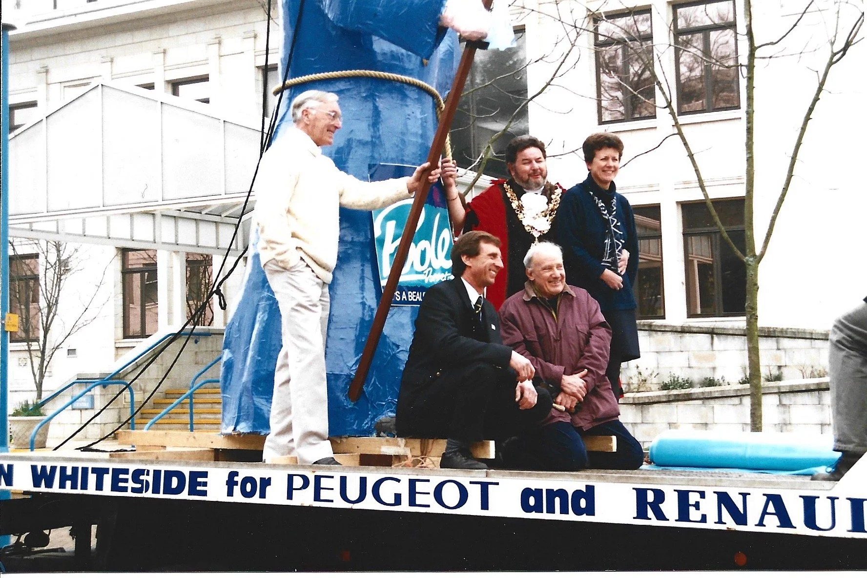 A party from Poole will accompany the Mayor, Councillor Tony Trent and Mayoress on 15 April to take part in the 2023 Cherbourg Carnival. We are pleased to support 18 members of the well known local Dolphin Marching Band to be part of Carnaval processions on the streets of Cherbourg.But this won't be the first time the Poole-Cherbourg Twinning Association have joined the annual parade. In1995/96 a float depicting a huge model of St.George made its way across the Channel to join the Carnaval which has a long history in the cityIf you would like to help sponsor this visit please email the Honorary Secretary at: pooletwinning@gmail.comLocal young people in front of the PCTA Float, 1995/96.